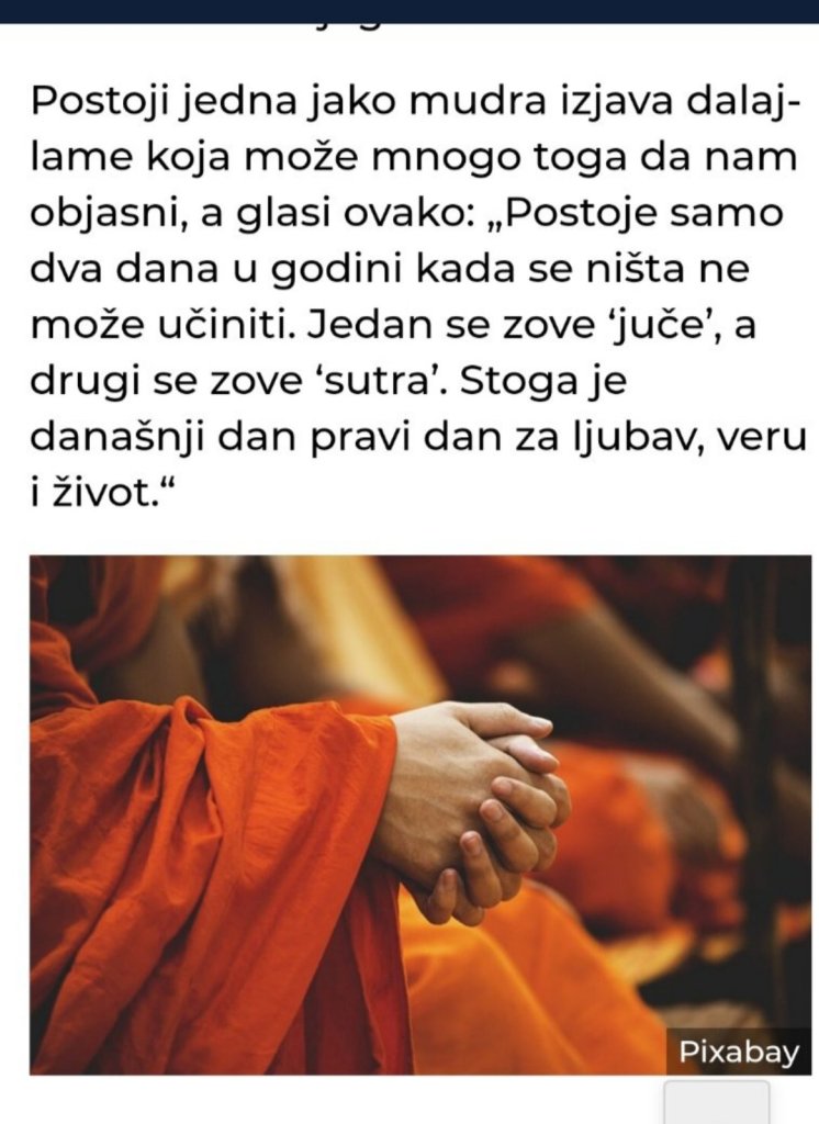 Živite život kao da sutra ne postoji. Ne ostavljajte obaveze i sve što vam je bitno po strani. Učinite nešto bitno za sebe, volite sebe, jer to bitno ste vi.